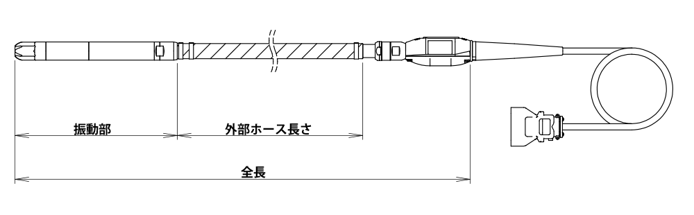 従来の一体型高周波バイブレータでは、故障箇所の特定および分解、修理に手間も時間もかかる問題がありました。 そこで、新たに分割式コネクタを採用し、振動体,ホース,スイッチ外部コードアッセンの3つに分解することが可能となり、故障箇所の特定および分解、修理に要する時間を大幅に短縮させることに成功しました。