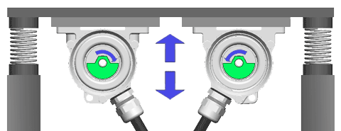 If there is a large difference in rotational frequencies, the vertical vibration is not provided because of no synchronization.