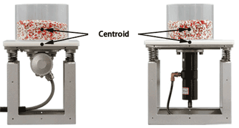 The arrangement of correct loading position is the position where the gravity center of table is matched with that of loading item in the resultant force axis of centrifugal force of vibrator.